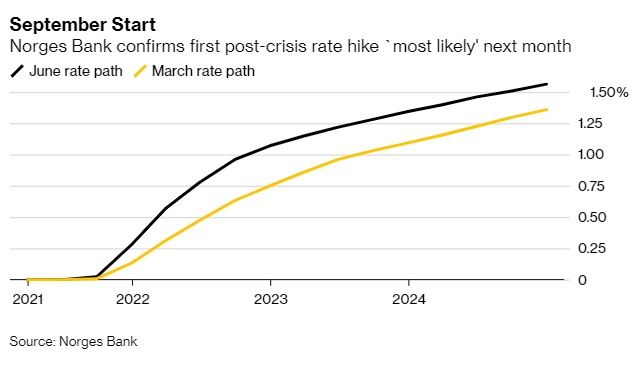 挪威央行表示,将在数周内开始收紧借贷成本,称自封锁限制放松以来,国家的经济增长出现了显著反弹。