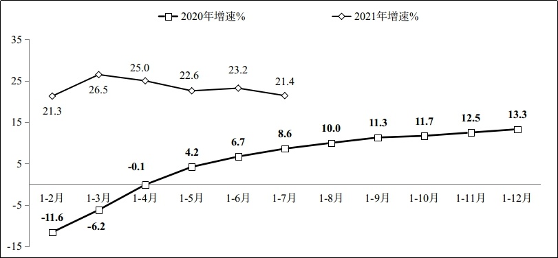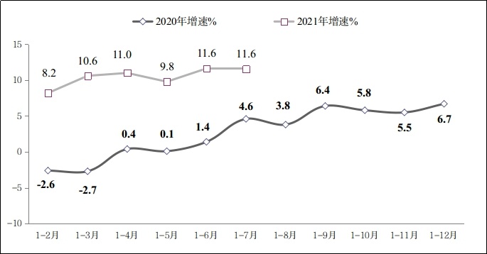 图1 2020年-2021年1-7月软件业务收入增长情况