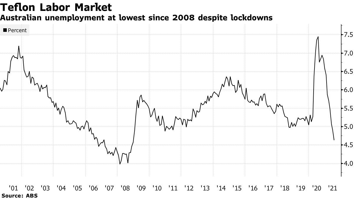 智通财经APP获悉,澳洲联储董事会成员Ian Harper表示,他预计失业率可能将回升至5%以上,并表示随着澳大利亚东海岸新一轮封锁开始影响到劳动力市场,劳动参与率将出现更大幅度的下滑。