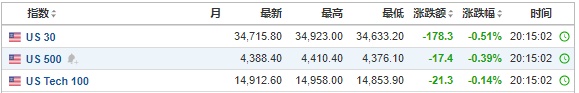 热门中概股方面,阿里巴巴(BABA.US)盘前涨0.34%,拼多多(PDD.US)盘前跌0.78%,京东(JD.US)盘前跌0.32%,哔哩哔哩(BILI.US)盘前跌1.31%,百度(BIDU.US)美股盘前跌0.15%。