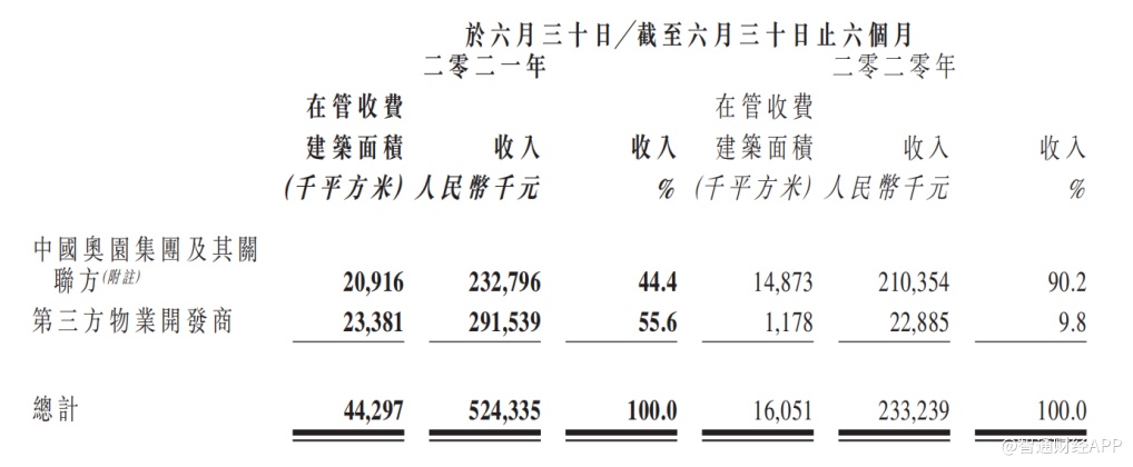值得注意的是,并购第三方物业令奥园健康的业务结构得到明显优化。截至上半年,公司来自第三方物业开发商的在管收费建筑面积达到2338.1万平方米,占比大幅提升至55.6%,表明奥园健康独立拓展业务的能力显著增强。