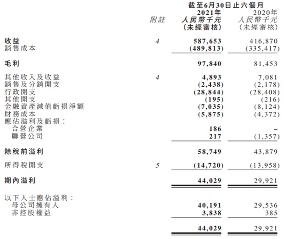 值得注意的是,期内公司录得净利润率为约7.5%,较2020年同期的约7.2%增加0.3个百分点。针对于净利润率提升,公司将其主要归因于致力实施有效的成本控制措施及出现规模效应逐渐形成,及集团在合营企业及联营公司的投资开始见成效并产生溢利。