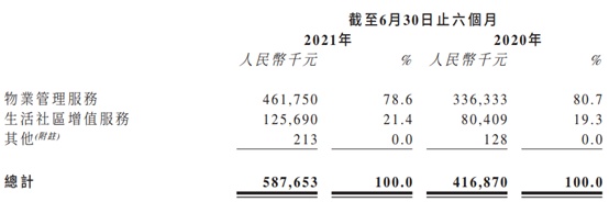 收入结构上来看,公司各项业务整体表现出齐头并进态势,在来自客户合约的收益中,主营业务物业管理服务依然保持着良好的增长势头,2021上半年实现约4.62亿元,较去年同期增长37.3%,社区增值服务同样发展迅猛,由上年同期的8040.9万元突破亿元大关,实现近1.3亿元的营收,增速高达56.3%。