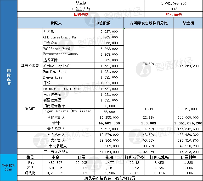 国际配售申购人数未披露,认购倍数约4.86倍。