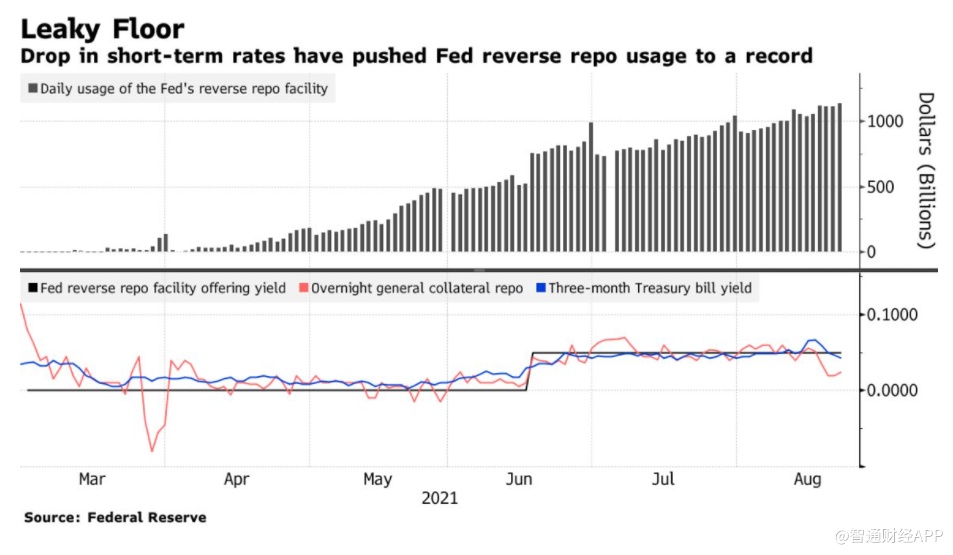 智通财经APP获悉,事实证明,美联储为隔夜资金市场设定的底线无法抵挡现金的涌入。