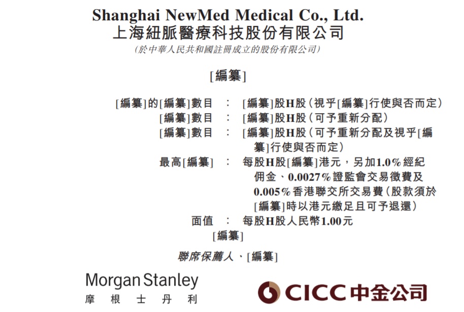 智通财经APP获悉,据港交所8月23日披露,上海纽脉医疗科技股份有限公司(Shanghai NewMed Medical Co., Ltd. )向港交所主板递交上市申请,摩根士丹利与中金公司为联席保荐人。