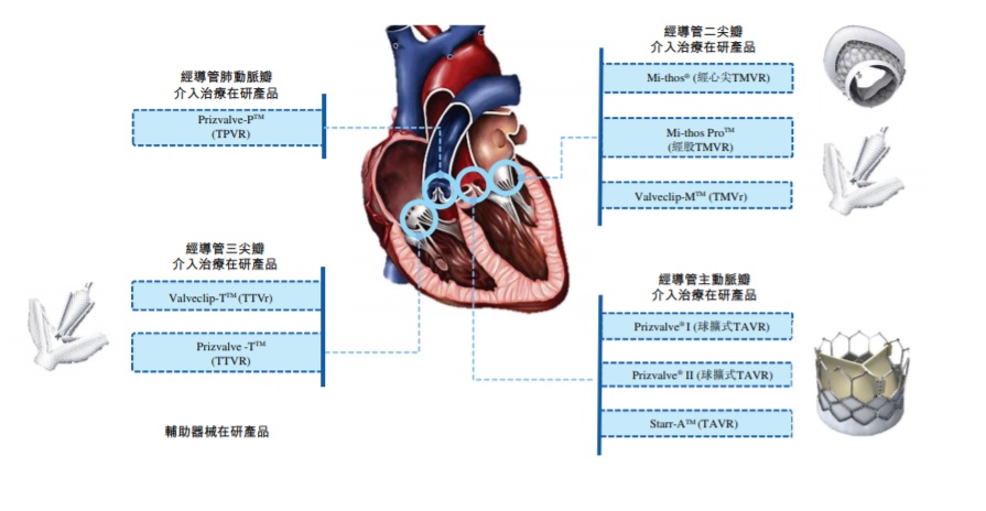 公司已组建全面的经导管置换和修复在研产品组合,用于治疗人类心脏中的所有四个瓣膜,连同用于介入心脏手术的辅助器械。截至最后实际可行日期,公司的产品研发管线包括16款在研产品。国家药监局已认可公司的三款在研产品为符合特别审查资格的创新医疗器械。