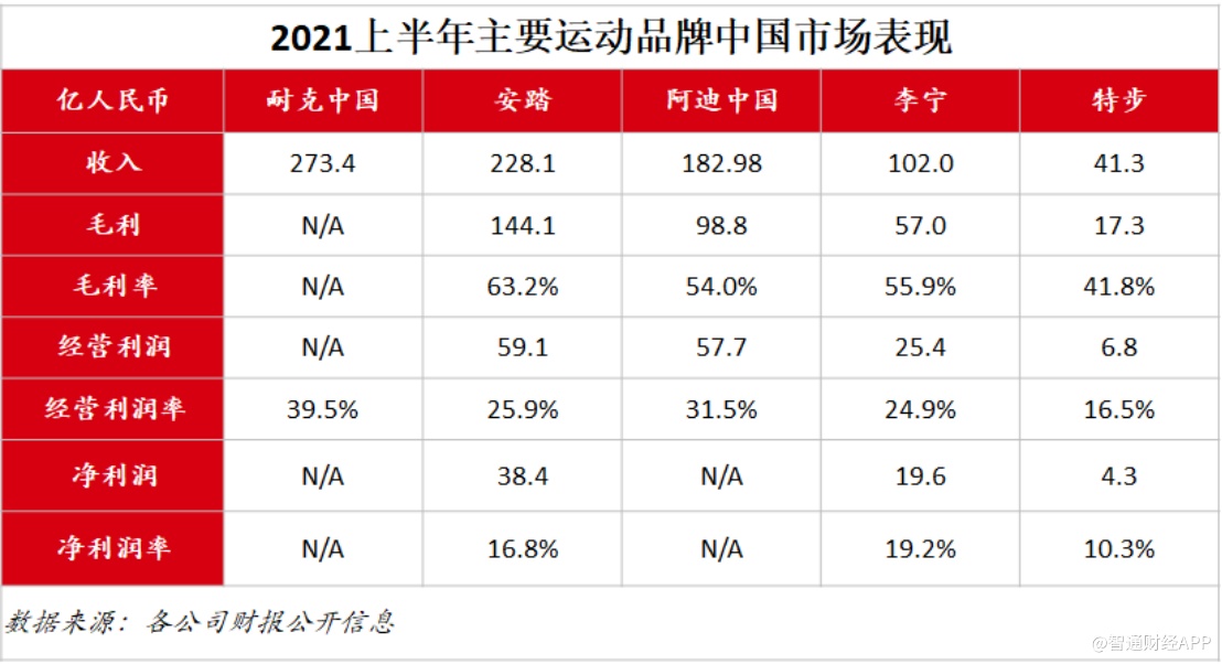 除此之外,安踏在中国市场与国际领先品牌的较量也逐渐掌握主动。数据显示,上半年安踏集团营收已超过阿迪达斯中国的182.98亿元人民币,同耐克中国的差距也显著缩小。