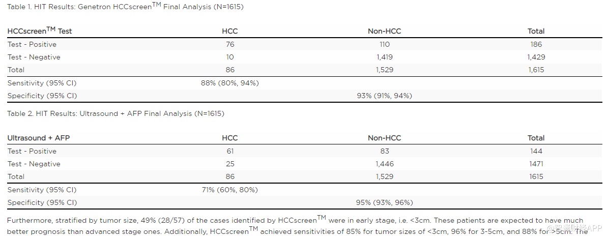 从癌症早筛,到癌症诊断治疗,再到预后监测,覆盖癌症全周期的液体活检专业技术,是泛生子独特的技术优势。这其中,2019年泛生子自主研发的具有高灵敏度和特异性的、基于血液样本的肝癌早筛HCCscreen™及核心技术Mutation Capsule™,产品成熟度最高,成为公司率先进行商业化布局的LDT服务样本。其产品的优越性可以和美国早筛龙头Exact Sciences媲美。泛生子在今年初披露的HCCscreen数据,与Exact Sciences披露的肝癌早筛OncoGuard Liver数据相比,灵敏度、特异性表现不相上下。