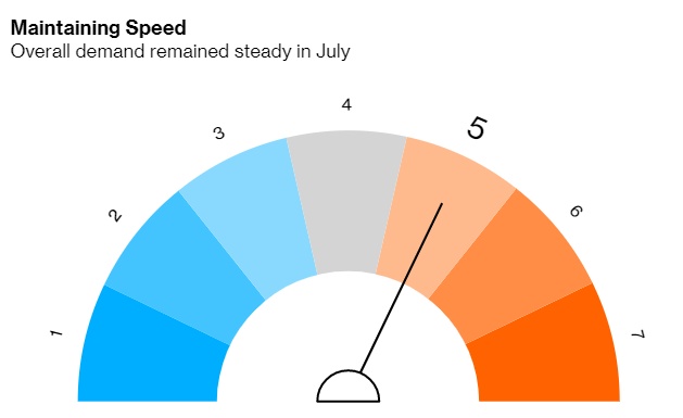 据了解,金融机构追踪的8项高频指标7月均无大幅波动,这些指标是基于3个月加权平均分数,以消除单月数据的波动性。经机构测算,测量总体经济活动的指针稳定在5左右的水平,与6月的水平几乎一致。