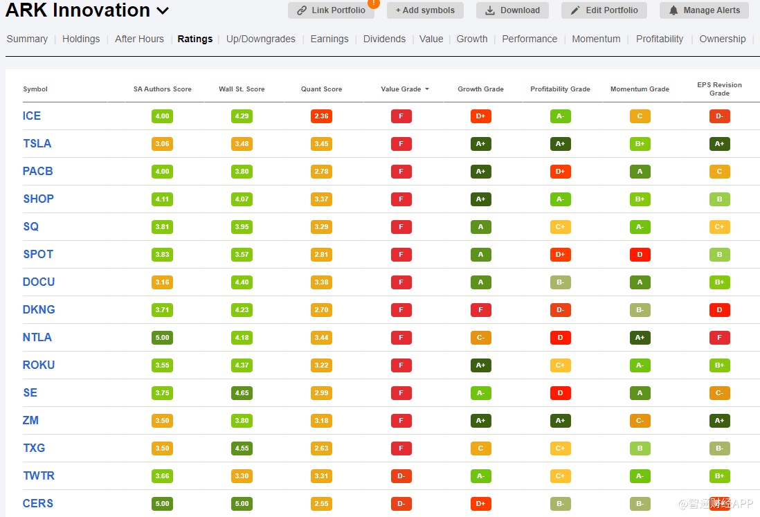 凯西•伍德(Cathie Wood)的ARK Innovation ETF持有的很多股票的价值评级从F到D-不等。 这些股票很受欢迎,但Cress认为,在通胀打压未来利润的情况下,在投资组合中纳入“抵御通胀”的价值股至关重要。 而ARKK的股份现在不符合要求。