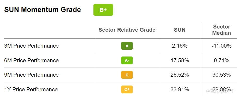 太阳石油的增长势头评级最高,表明与整个行业相比,投资者对该股的基本面和在油气炼油行业的地位感到满意: