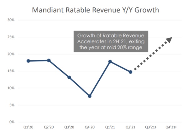 此外,2021年第二季度的总收入同比仅增长17%。Mandiant Advantage订阅业务最近的增长率略低于这一区间,为15%,比20%的年复合增长率目标低了整整500个基点。管理层则认为,在第二季度,Mandiant的订阅业务将加速增长,并第四季度结束时将达20%左右的幅度。
