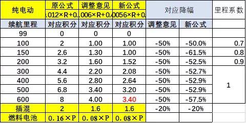 2021年新单车双积分的计算应该说主要改变的是计算公式,也就是说是纯电动车和燃料电池车的双积分,征求意见稿相较原来的得分数值大幅削减一半。而发布稿有进一步下降2%,主要是抑制高端电动车的获得积分的效果。