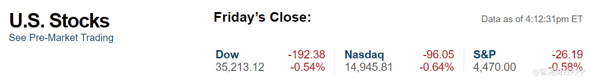他在发表上述言论之际,美股三大指数齐跳水,尾盘跌幅均有所扩大。截至收盘,纳指跌0.64%,标普500指数跌0.58%,道指跌0.54%。