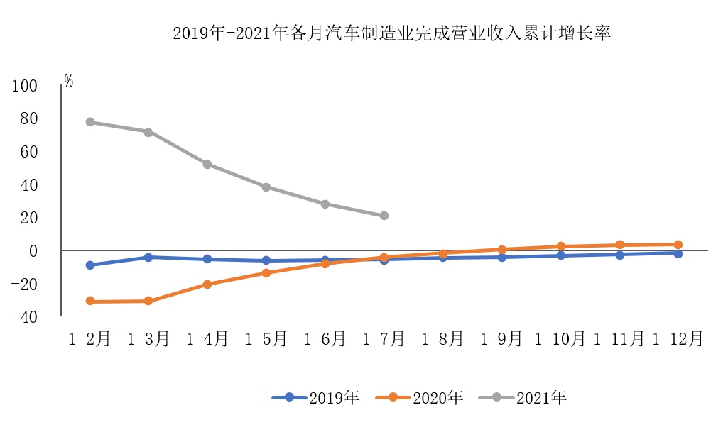 智通财经APP获悉,据中国汽车工业协会整理的国家统计局公布的数据显示,2021年1-7月,汽车制造业完成营业收入同比保持较快增长,增速比上半年继续回落。2021年1-7月,汽车制造业完成营业收入49069.9亿元,同比增长20.7%,增速比上半年回落7.3个百分点,占规模以上工业企业营业收入总额的比重为7.1%。