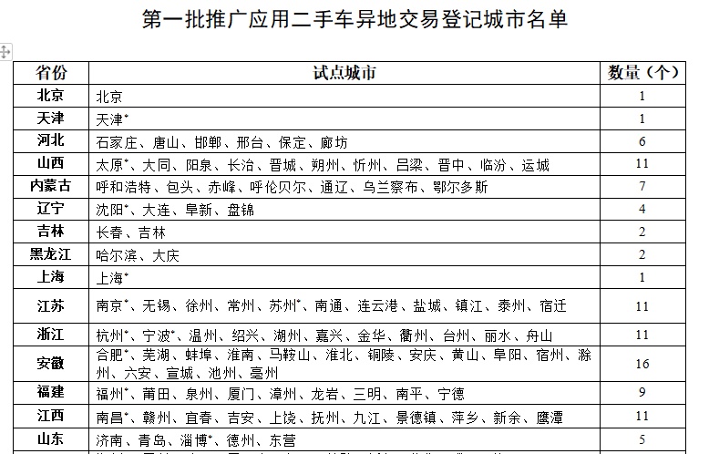 附件:第一批推广应用二手车异地交易登记城市名单.doc