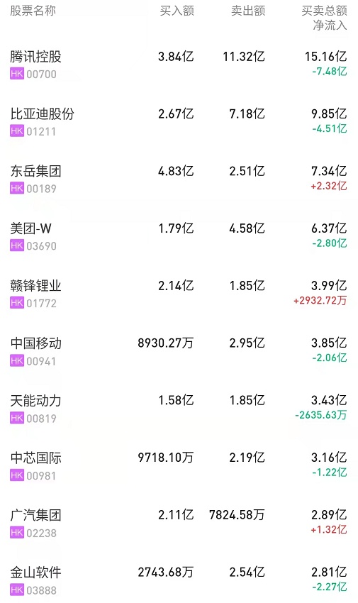 港股通(深)十大活跃成交股