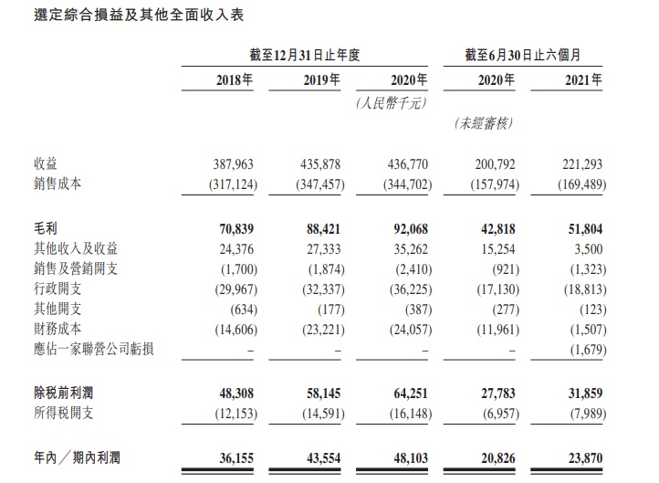 于2018年、2019年、2020年以及截至2020年及2021年6月30日止六个月,苏新美好生活的总收益分别为人民币3.88亿元、人民币4.36亿元、人民币4.37亿元、人民币2.01亿元及人民币2.22亿元,且公司的年内或期内利润分别为人民币3615.5万元、人民币4355.4万元、人民币4810.3万元、人民币2082.6万元及人民币2387万元。