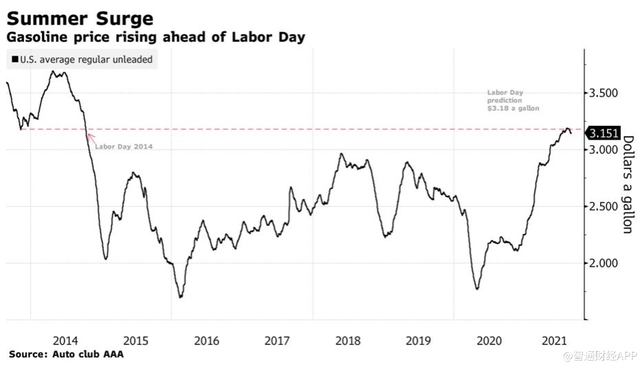 GasBuddy的石油分析主管Patrick DeHaan表示,由于供应紧张,本周末普通无铅汽油的全美平均价应会攀升至每加仑3.18美元。根据汽车俱乐部AAA的数据,周一无铅汽油已经接近这个价格,约为每加仑3.15美元。