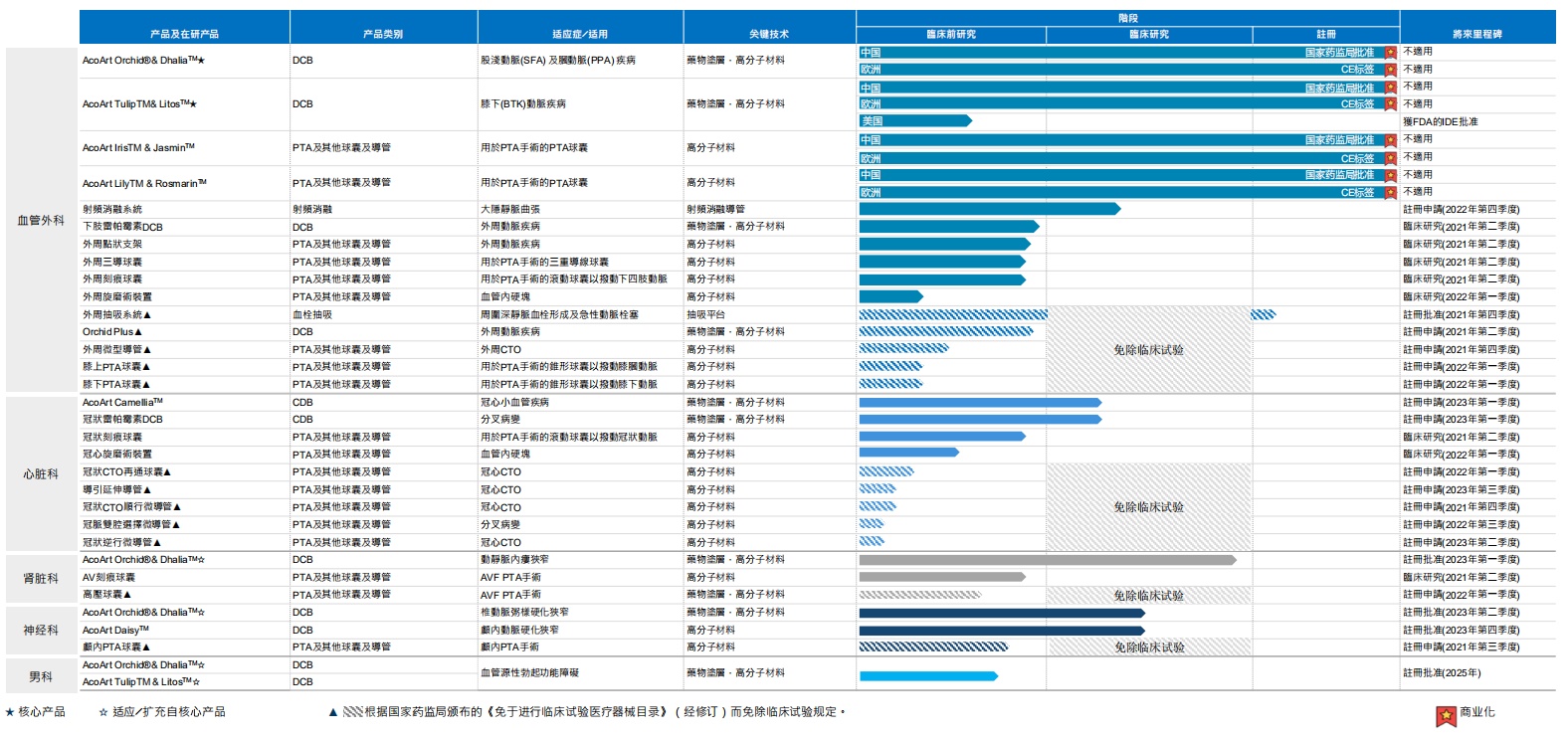 此次财报同时披露了一项针对其获批产品AcoArt Orchid&Dhalia的临床研究结果。该研究是一项针对自体动静脉通路狭窄的多中心,前瞻性,随机对照临床研究,表明实验组6个月Freedom-TLR(即目标病变在手术后6个月内没有再次进行治疗的比率)数据为91.3%,对照组为66.7%。而国产DCB在同类临床实验中的此结果为85.9%,某进口DCB同类结果为82.2%。