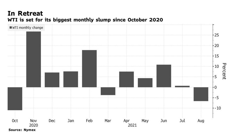 由于投资者对全球疫情的反复和美元汇率的波动作出反应,油价在8月份经历了动荡。在经历了这波波动之后,美国基准油价本月下跌了近7%,尽管中国等主要原油进口国已成功控制了疫情,但美国原油库存仍在稳步增加。
