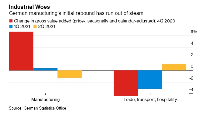 事情将如何发展的关键在于德国占主导地位的汽车行业,但目前该行业一直受到全球半导体短缺的阻滞。