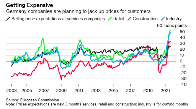 这种担忧也突显了德国央行的警告。德国央行在上周表示,今年的经济增长可能低于6月份预测的3.7%,部分原因是供应问题。
