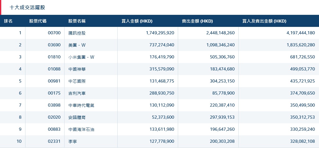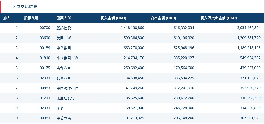 此外,李宁(02331)、长城汽车(02333)、中海油(00883)分别遭净卖出2.49亿、3.02亿、3.33亿港元。