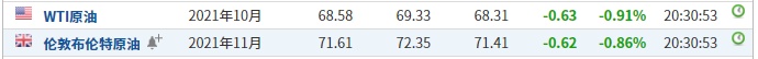 截至发稿,WTI原油跌0.91%,报68.58美元/桶。布伦特原油跌0.86%,报71.61美元/桶。