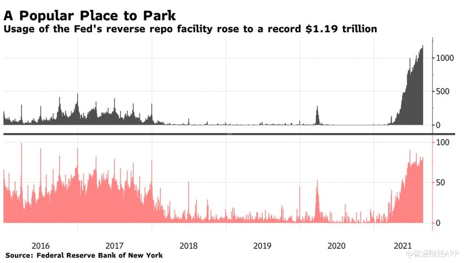 智通财经APP获悉,美国利率市场上的现金过剩,将货币市场基金和银行等投资者存入美联储的隔夜闲置现金量推到了另一个历史高点。