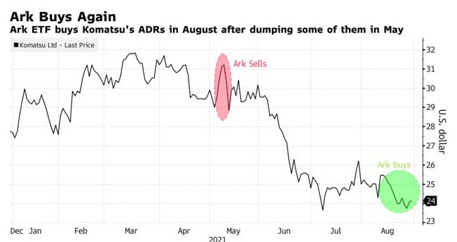 据Ark的网站显示,ARKQ目前持有290多万份小松公司的ADR,价值超过7000万美元。
