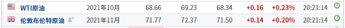 截至发稿,WTI原油涨0.23%,报68.66美元/桶。布伦特原油涨0.20%,报71.77美元/桶。