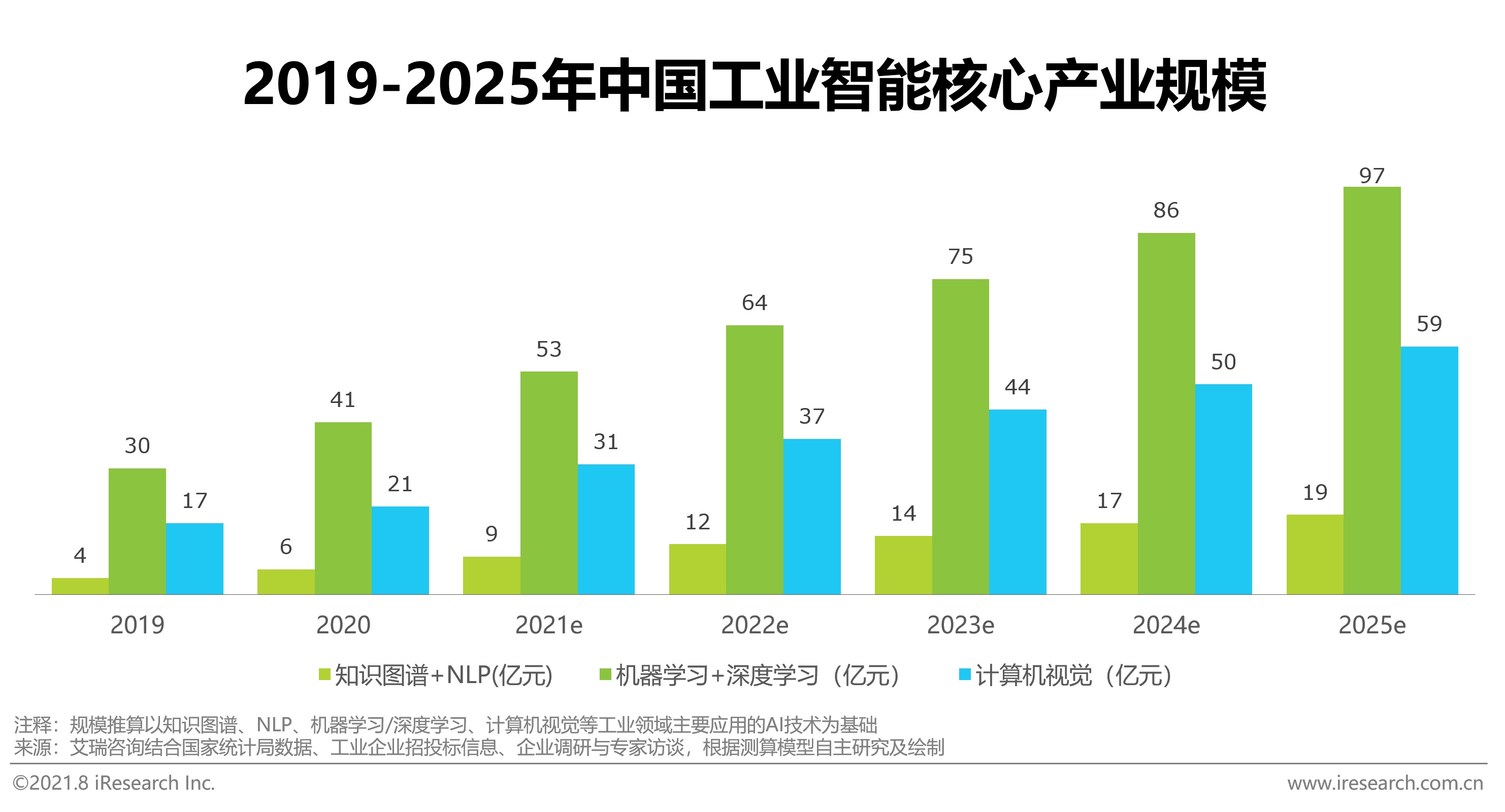 人工智能将重新切割工业互联网投入空间。2020年以机器学习与深度学习、知识图谱、NLP、计算机视觉为技术主导的我国工业智能应用核心产业规模为68亿元,年均复合增长率达到27.96%,产业整体具备高成长性。然而目前人工智能服务商多以自身独立的系统交付工业智能解决方案,工业互联网平台服务商提供的平台AI功能也以基于开源框架的算法模型自主开发为主,平台AI功能集中于基础性的数据分析能力优化,AI技术并未在工业互联网中实现广泛化应用。总体来看,现阶段工业智能与工业互联网的结合应用呈星点状分布,未来随着工业互联网对数据价值深度挖掘的依赖性提升,人工智能技术将加速向工业互联网融入,工业互联网建设的资金投入比例将重新洗牌。