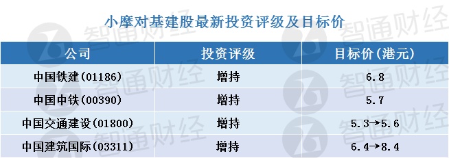 该行表示,因应前景和成本改善,均有助基建股改善盈利能力及现金流。故将相关股份盈利增长预期上调最多10%,较看好中国建筑国际,其他依次为中铁、中国铁建及中交建。