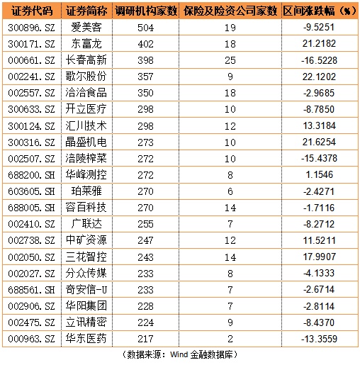 (3)长春高新(000661.SZ):稳居“险资个股关注榜”TOP1