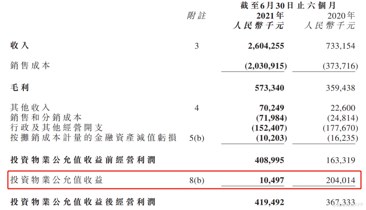 在收入大增、毛利率维持高位、且运营效率大幅提升的共同作用下,粤港湾控股2021年上半年的净利润为1.61亿元,同比增长68.2%。但值得注意的是,在2020年上半年时,投资物业公允值的收益高达2.04亿元,而2021年上半年仅有1049.7万元。若不计该项投资物业公允值收益,那么粤港湾控股在报告期内的净利润同比增速将爆发式增长,而不仅仅是68.2%的增速。