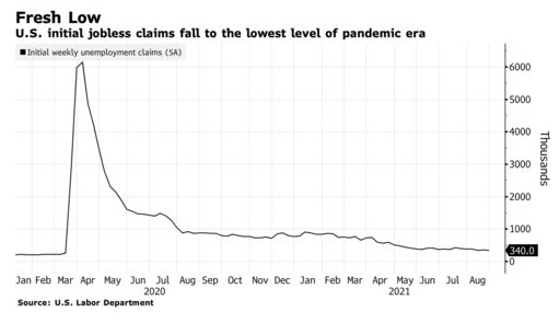 几个月来,由于经济的全面恢复和对工人需求的增加,初请失业金人数持续下降。不过,与疫情前相比,初请失业金人数仍然较高,而快速蔓延的delta变种给经济前景注入了不确定性,构成了企业未来裁员的风险。