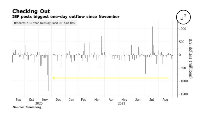 iShares 7-10年期国债ETF创下了自去年11月以来的最大单日资金流出量