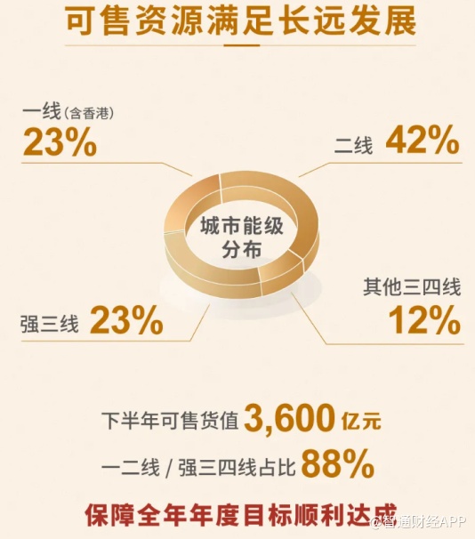 在强大的土地储备的支撑下,2021年下半年公司预计可售资源2004万平方米,可售货值3600亿元。其中,88%布局于一二线及强三线城市,72%为提供充裕现金流的住宅类产品,货值充裕且具备结构优势,预计可顺利实现3300亿元年度目标。
