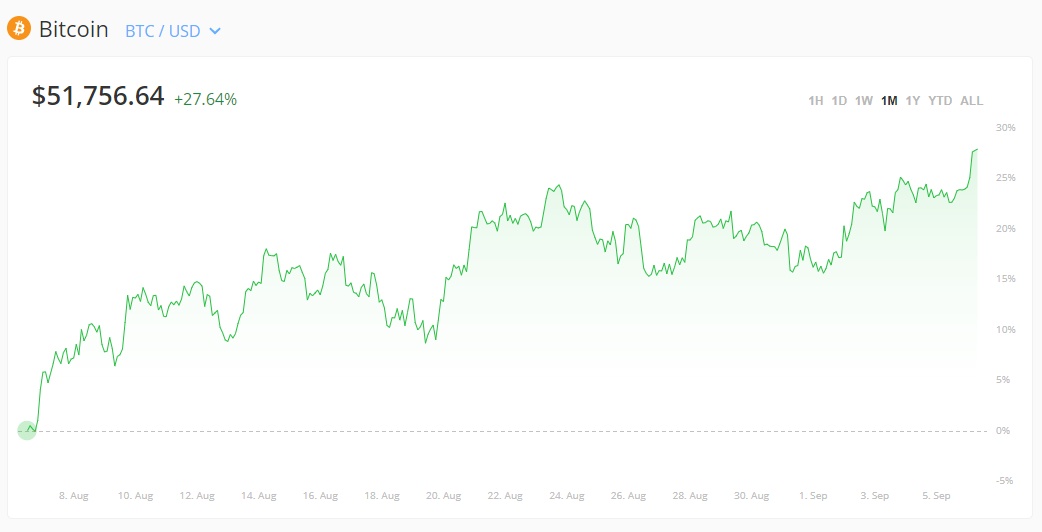 智通财经APP获悉,上周,比特币实现两周内第二次突破5万美元,延续了自5月份开始的大幅抛售后的上涨,截至发稿,比特币报51756.64美元/枚。