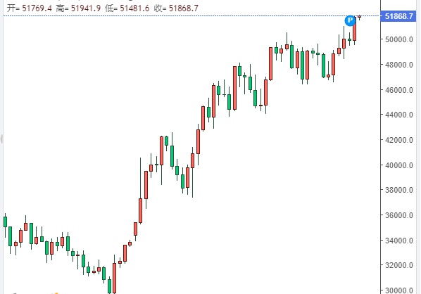 截至发稿,比特币价格为51774.6美元/枚,涨3.85%。
