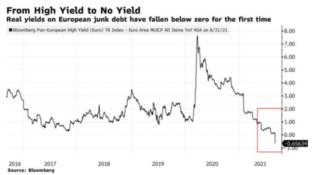 智通财经APP获悉,在欧元区8月份消费者价格飙升至十年高位之后,垃圾债券经通胀调整后的收益率首次变为负值,这让基金经理们不仅担心违约风险,还要担心价格增长。