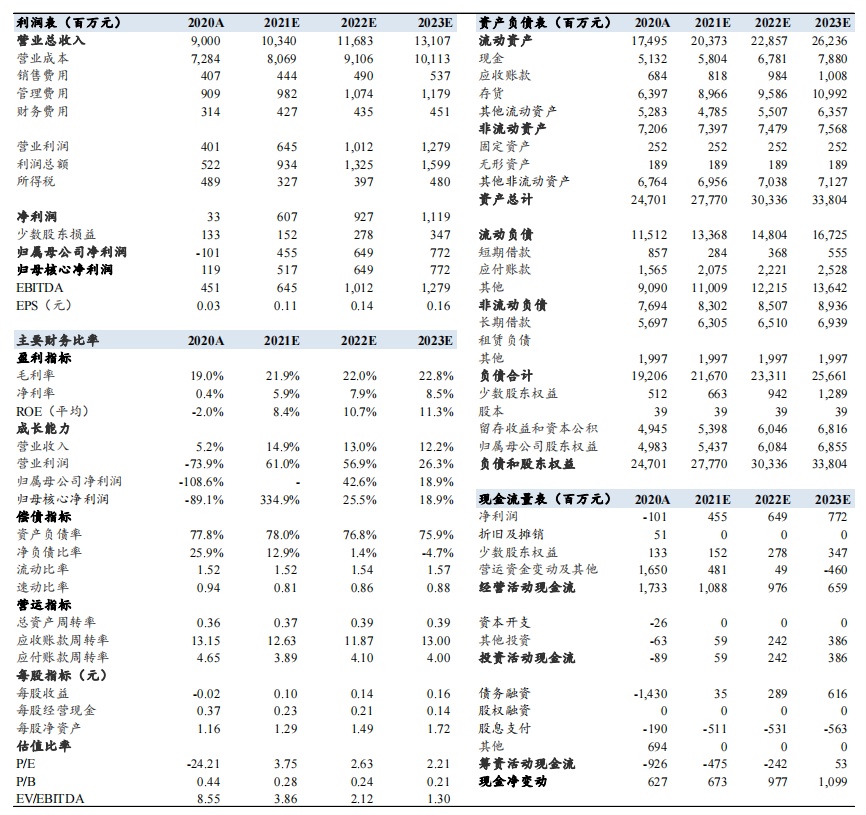 公司作为较早进行战略转型的特色房企,能够凭借其品牌、开发能力等优势实现销售业绩的稳步增长,美国地产业务的快速增长也证明了公司投资的实力。另一方面,作为绿色代建领域龙头企业,商业代建市场的蓬勃发展也能为公司带来新的业绩增长点。预测公司2021/22年核心EPS为人民币0.11元/0.14元,参考开发及代建同业估值,给予公司33.1亿港元目标市值,目标价0.7港元,较现价空间达71%。