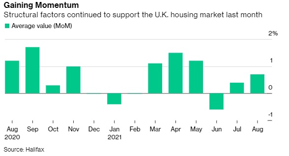 智通财经APP获悉,英国最大的按揭贷款和储蓄银行——哈里法克斯银行提供的数据显示,英国房价8月份继续呈现上涨势头,并表示在一定程度上说明减税政策的逐步收紧对房地产需求的影响已经微乎其微。
