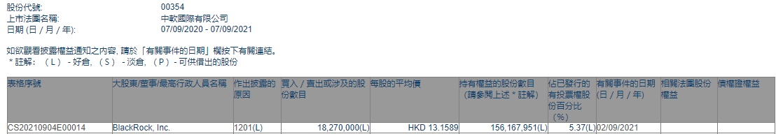 智通财经APP获悉,香港联交所最新资料显示,9月2日,BlackRock, Inc.减持中国软件国际(00354)1827万股,每股作价13.1589港元,总金额约为2.40亿港元。减持后最新持股数目约为1.56亿股,最新持股比例为5.37%。
