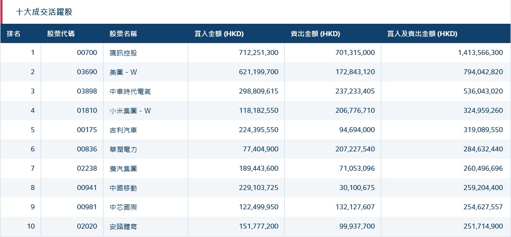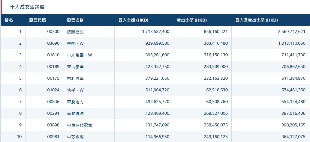 此外,中国移动(00941)、安踏体育(02020)分别获净买入1.99亿、5183万港元。而中芯国际(00981)、华润啤酒(00291)、中车时代电气(03898)分别遭净买入1.43亿、1.4亿、6513万港元。