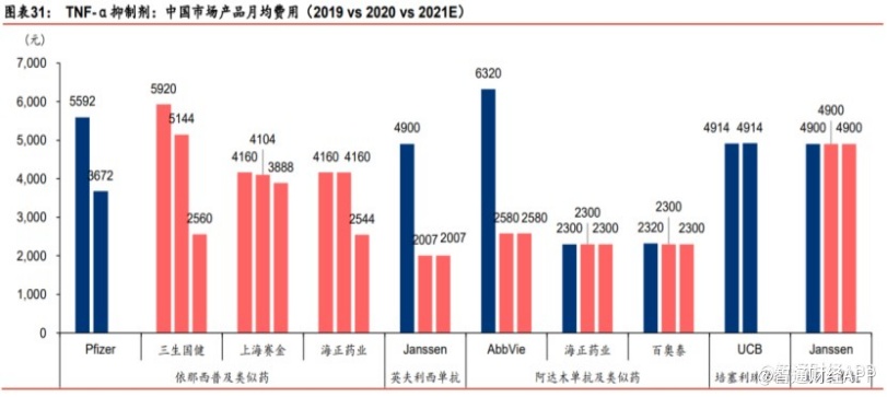 2020年,阿达木单抗、英夫利昔单抗进入医保后大幅降价,其月均费用从 5000-6000元降至2000-2500元,面对竞争对手的“攻势”,去年10月起,益赛普也相应进行调价,月均治疗费用已从此前的5144元降至2560元。