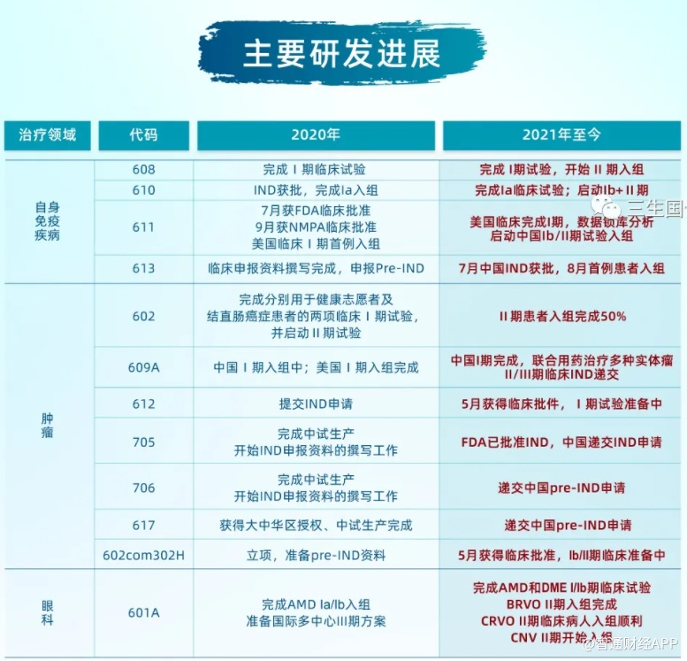 从最新研发进展来看,今年上半年,三生国健新增了3项临床批件,新递交了4项IND申请,新增了1项Pre-IND申请,同时还新增了3项抗体立项。