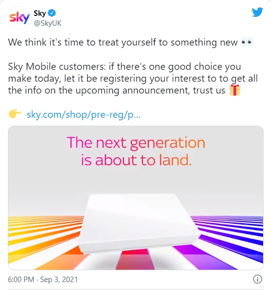 英国移动服务运营商Sky Mobile公司发布了一条推文,推文中公司敦促客户登记自己的详细信息,以获得“即将发布的公告中的所有信息”。同时,在这条推文还附上一段视频和链接,视频上面写道:“下一代(移动设备)即将着陆。”而在链接的网页上,提到了“下一代”移动设备将于9月14日登陆。虽然推文中没有提到苹果或iPhone的名字,但很有可能这一公告与苹果将要举行的发布会以及“iPhone 13”有关。